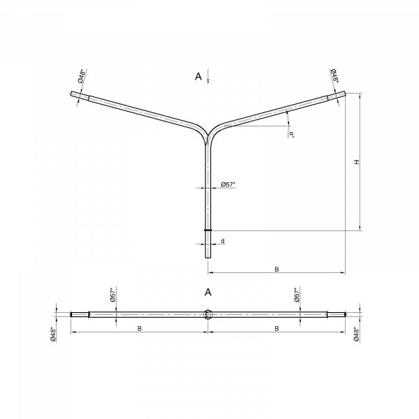 Двухрожковые кронштейны К3-2,0-2,0-1-1 предназначены для крепления светильника на трубчатой опоре освещения.